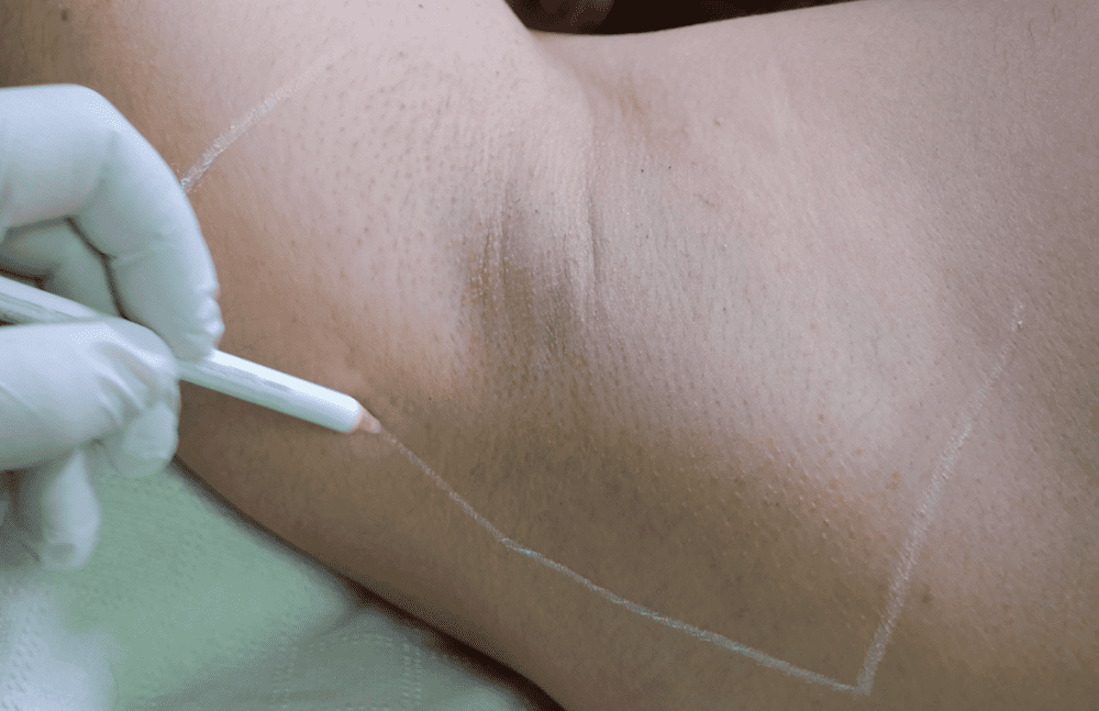 Nachdem wir die richtigen Einstellungen gefunden haben, markieren wir die zu behandelnde Stelle präzise. Diese Markierungen helfen uns, während der Behandlung den Überblick zu behalten und sicherzustellen, dass jede Region gleichmäßig behandelt wird.